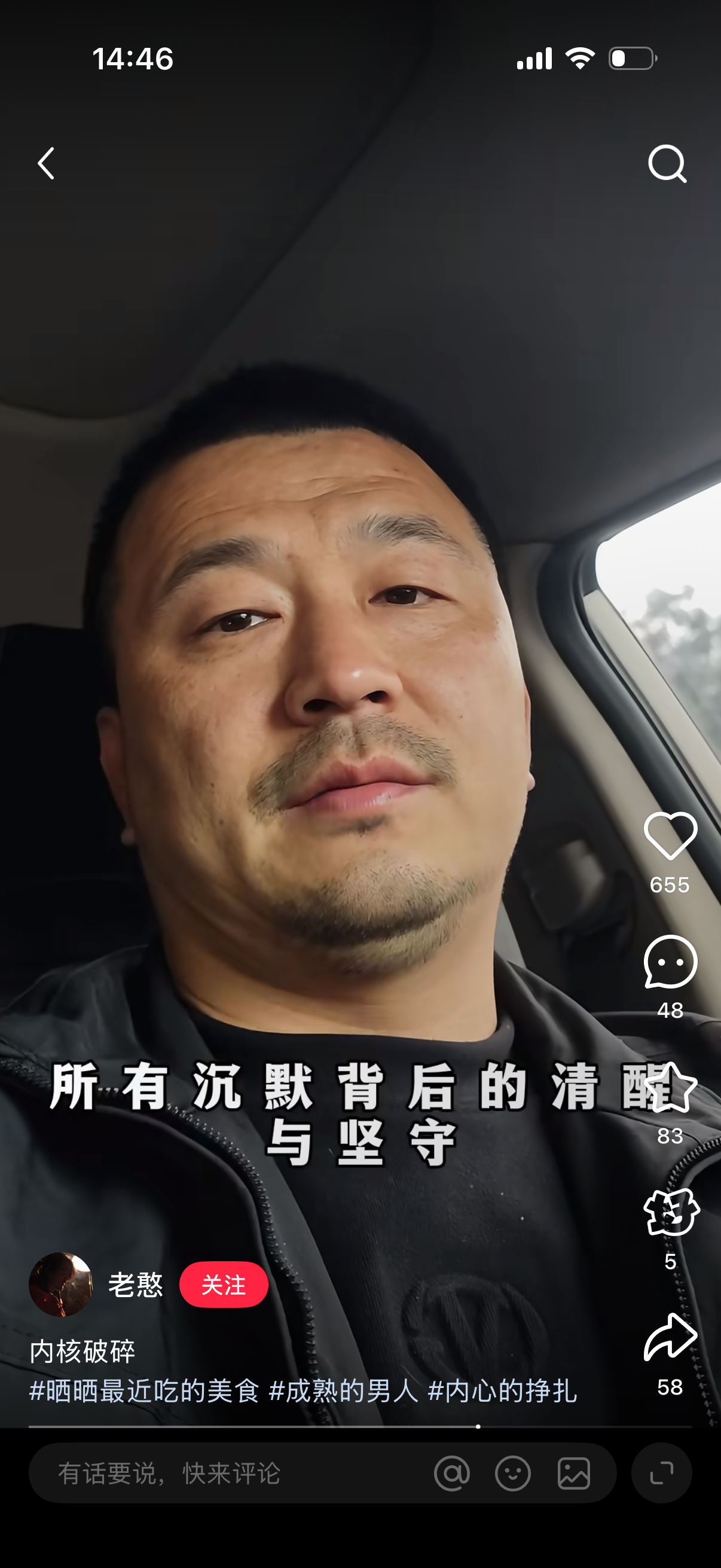 小红书给我推了这个大哥,视频风格是谈人生。评论基本都是叽里咕噜说什么呢一句听不进去只想亲嘴。